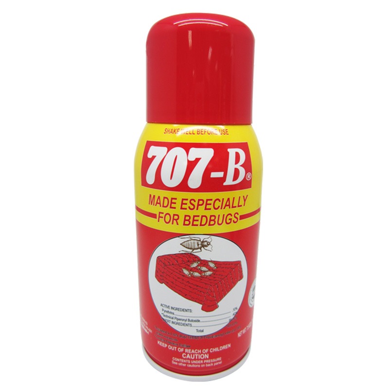The 707-B Bed Bug & Flea Killer Spray (7.5 oz / 210g) is a fast-acting insecticide designed to eliminate bed bugs, fleas, lice, ticks, dust mites, and their eggs. Safe for use on mattresses, wooden furniture, and carpets, it offers a non-staining formula suitable for water-safe fabrics and surfaces. Ideal for use in homes, hotels, schools, and other indoor spaces, it provides effective pest control with minimal residue.