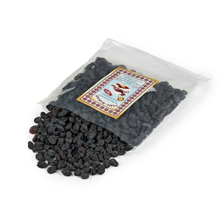 Aahu Barah Black Raisins are naturally sweet and packed with antioxidants, vitamins, and minerals, making them a perfect healthy snack. Ideal for baking, cooking, or adding to cereals and desserts.