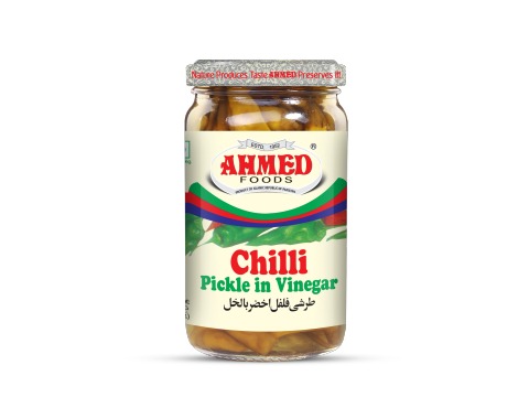 Ahmed Chilli Pickle in Vinegar is a tangy and spicy condiment made from fresh green chillies, aromatic spices, and tangy vinegar. This pickle adds a burst of flavor to any dish, enhancing the taste of your favorite foods. It contains no artificial colors or preservatives, ensuring a more authentic taste.