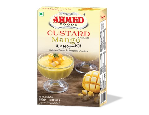 Ahmed Mango Custard Powder (300g) transforms into a rich, creamy dessert with a delightful mango flavor. Ideal for pairing with fruits, cakes, or enjoying on its own, it offers a quick and easy way to satisfy your sweet cravings. Simply prepare with milk and sugar for a delectable treat.