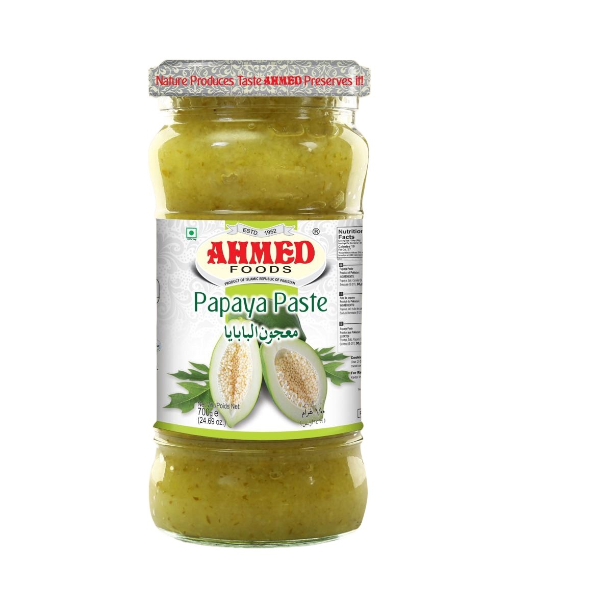 Ahmed Papaya Paste 320g is a versatile cooking paste made from fresh papaya, designed to tenderize meats and enhance the flavor of various dishes. Its natural enzymes help break down proteins, making it ideal for marinating beef, mutton, or poultry. A staple in South Asian kitchens, this paste ensures your meals are both flavorful and succulent.