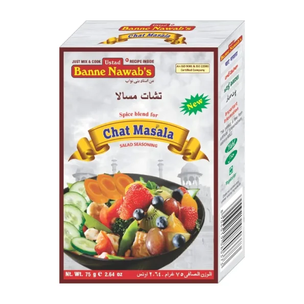 Banne Nawab’s Chat Masala is a zesty and tangy spice blend, perfect for enhancing the flavor of fruits, snacks, and street-style chaats. A balanced mix of spices adds a delicious kick to any dish. A must-have for spice lovers.