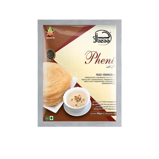 Jazaa Pheni Fried Vermicelli is a crispy, pre-fried vermicelli, perfect for making traditional desserts like sheer khurma. Just add warm milk and sugar for a quick and delicious treat.