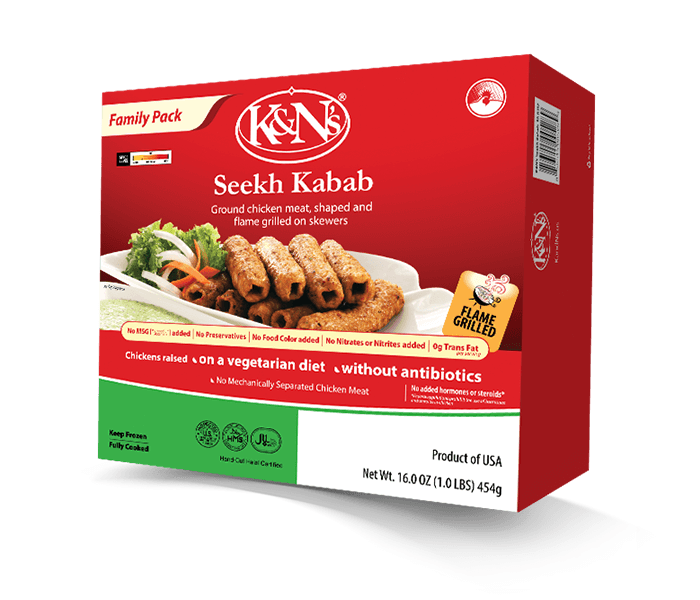 K&N Seekh Kabab is a delicious, spiced minced chicken skewer, offering an authentic grilled flavor, perfect for wraps, rice dishes, or appetizers.