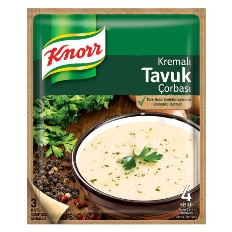 Knorr Kremali Tavuk is a creamy chicken soup mix with a rich, comforting flavor. Perfect for a quick and delicious bowl of soup that is both satisfying and easy to prepare.
