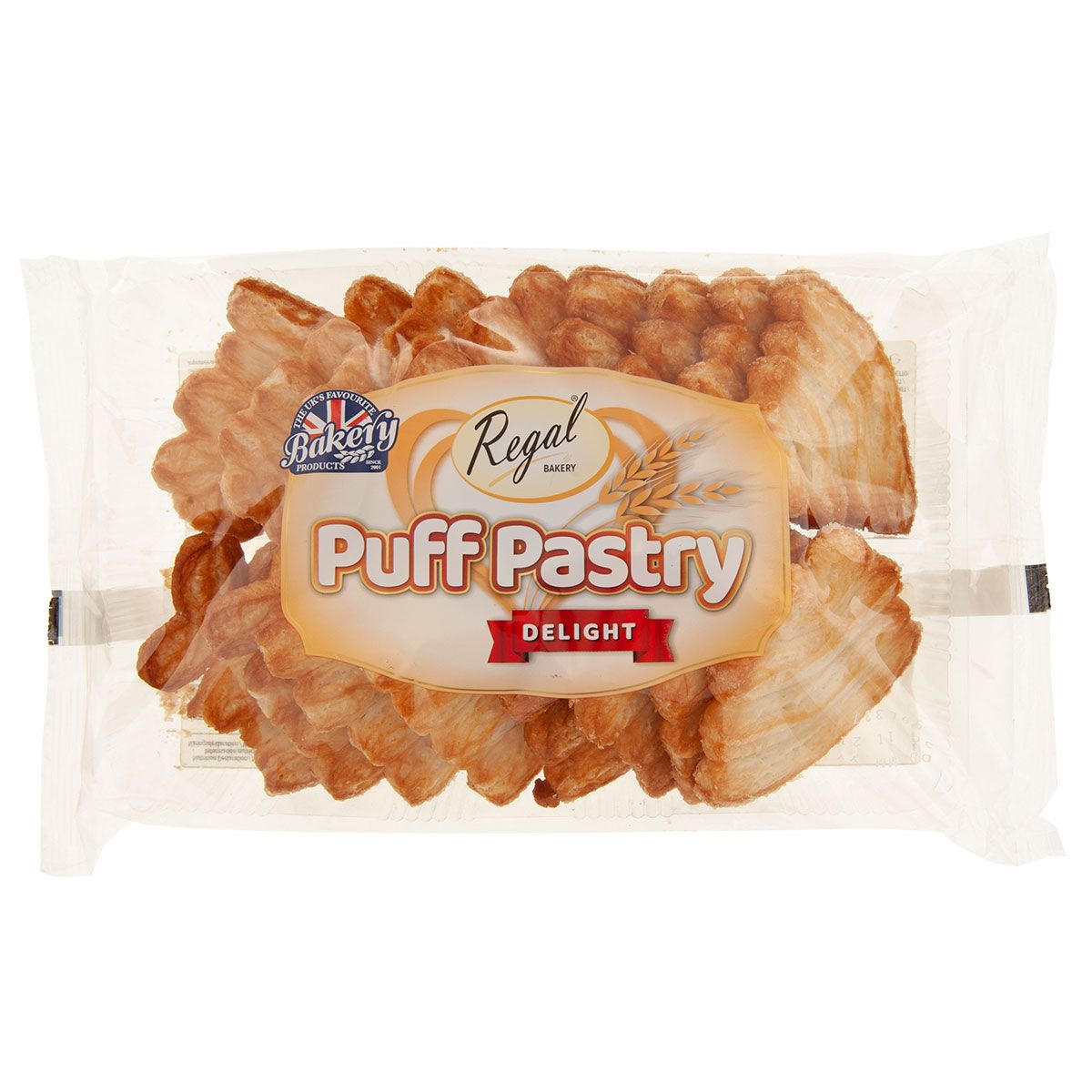 Regal Puff Pastry Delight offers light, crispy, and crunchy puff pastry shaped like palm leaves, delicately baked and glazed with sugar. Each piece boasts a unique layered texture and delectable crispiness, making it a delightful treat for tea time or as a snack. Suitable for vegetarians.