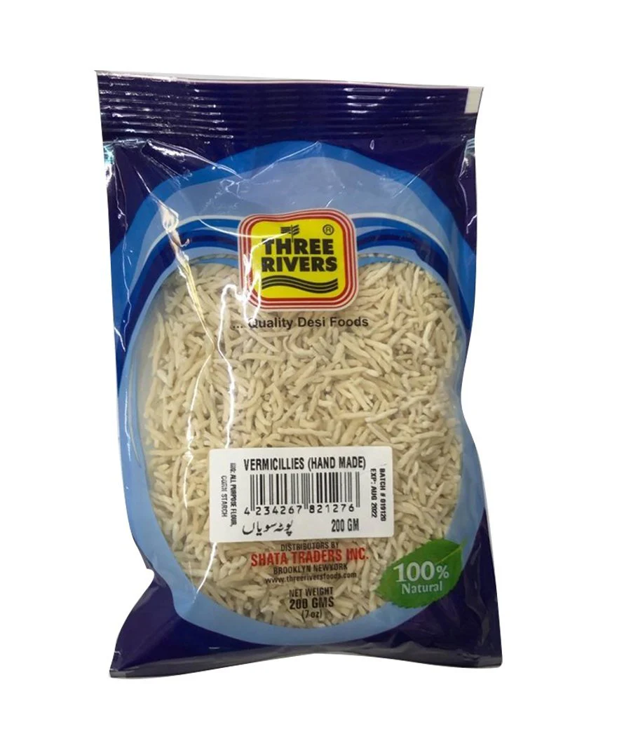 Three Rivers Vermicellies are thin, delicate noodles perfect for both savory dishes and sweet desserts like kheer or seviyan. Made from high-quality wheat, they cook quickly and hold their texture beautifully. A pantry essential for festive and everyday meals.