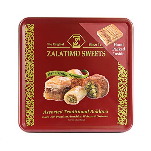 Zalatimo Assorted Baklava features a premium selection of flaky, buttery pastries filled with finely chopped nuts and sweetened with syrup. Handcrafted for authentic Middle Eastern indulgence. Perfect for gifting or enjoying as a rich dessert treat.